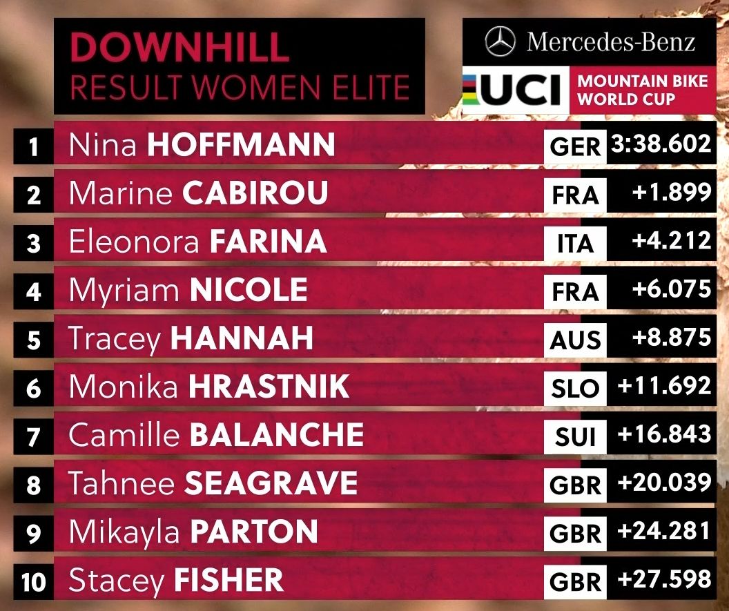 Für die nun im Gesamtweltcup Drittplatzierte Nina Hoffmann, amtierende Deutsche Meisterin, stand damit der erste Erfolg bei einem Weltcup fest. Führende im Gesamtweltcup ist die Französin Cabirou, deren Siegesserie nach 4 Weltcuperfolgen hintereinander nun unterbrochen ist.